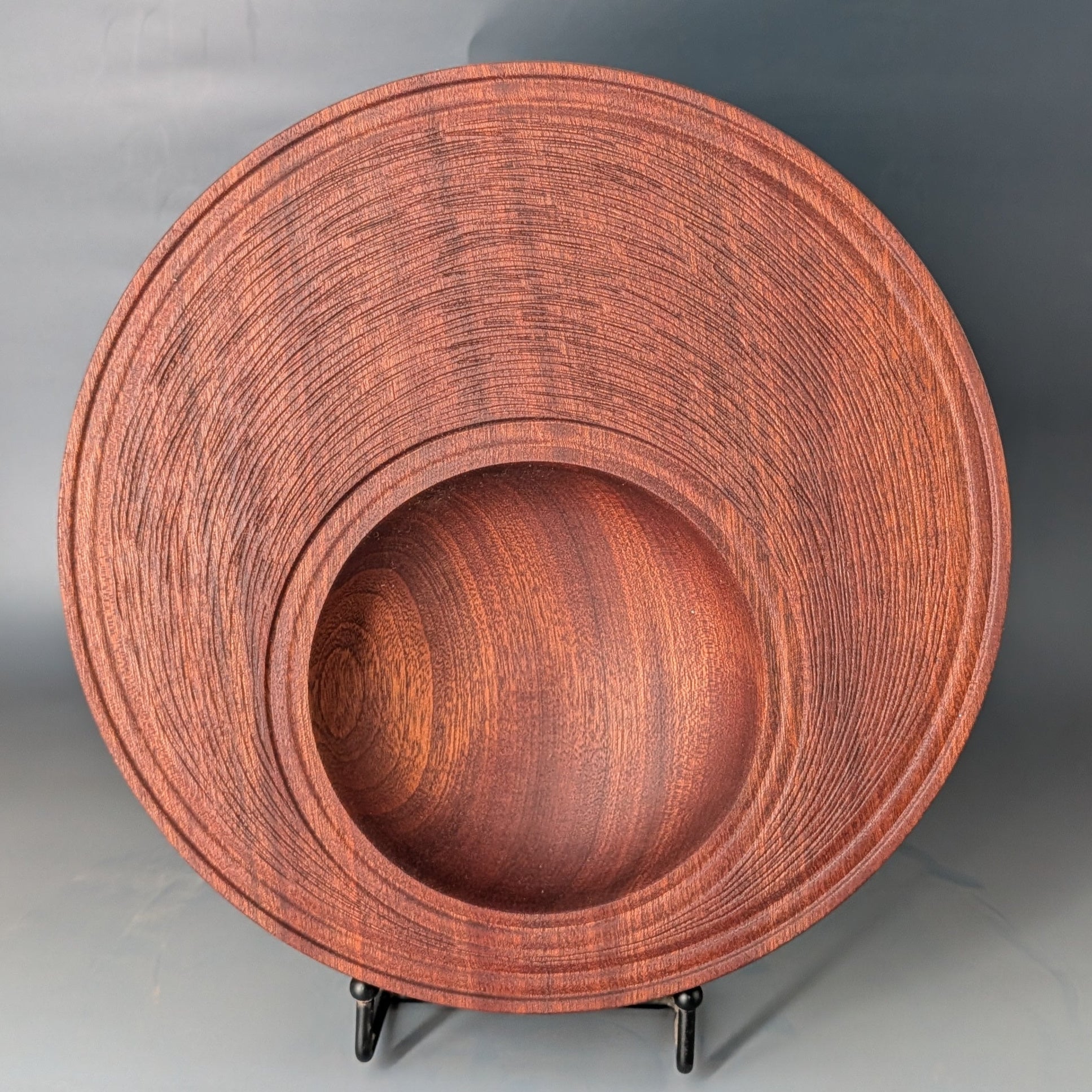 Hand-Carved Sapele Bowl | Off-Center Turning | 11"