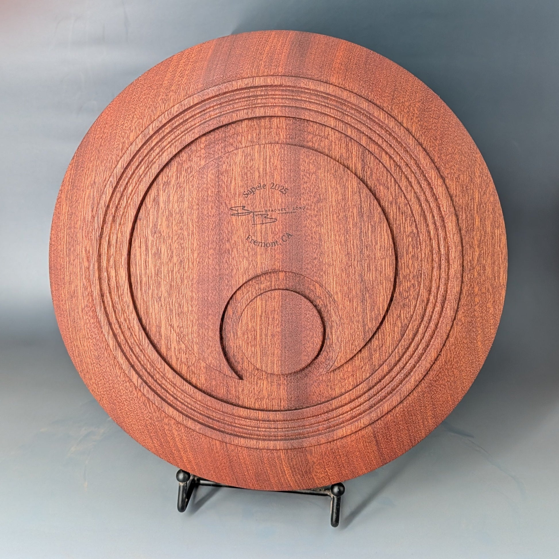 • A Story in Wood: The story of this piece is one of artistic interpretation. Sapele, a wood known for its deep reddish-brown hue and iridescent, ribbon-like grain, provides the perfect canvas. The design listens to the block of wood, preserving a portion of its rustic origin while refining the rest into a functional work of art.